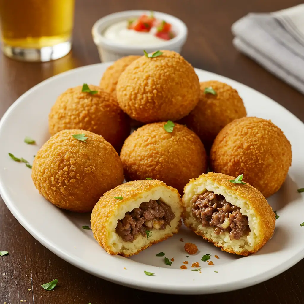 Deliciosos bolinhos crocantes por fora e macios por dentro, com um saboroso recheio de carne moída e tomate seco. Uma receita simples e saborosa da culinária brasileira, perfeita para um lanche ou entrada.