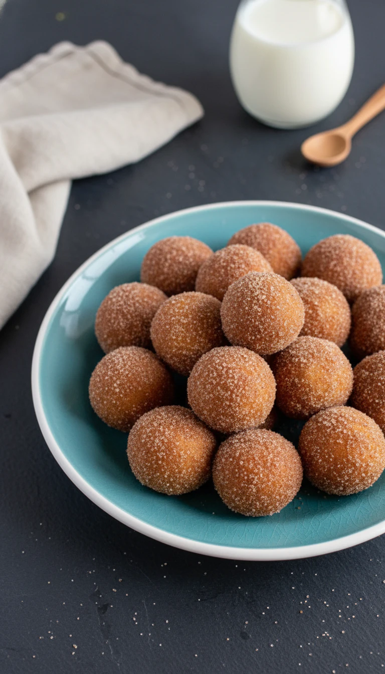 Enquanto ainda estão quentes, passe os bolinhos em uma mistura de açúcar e canela.