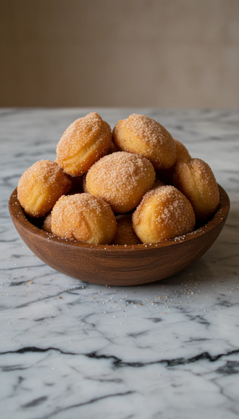Enquanto ainda estão mornos, passe os bolinhos em uma mistura de açúcar e canela.