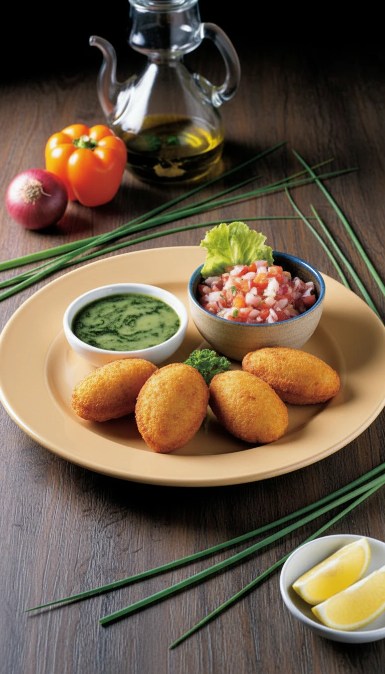 Deliciosos bolinhos de feijão fradinho, crocantes por fora e macios por dentro, acompanhados de um refrescante vinagrete de capim-limão. Uma combinação perfeita de sabores que encanta o paladar!