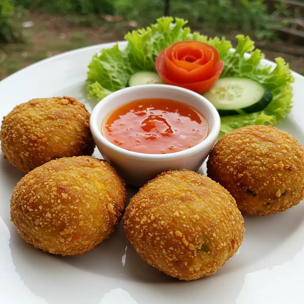 Frite os bolinhos em óleo quente até que estejam dourados e cozidos por dentro.