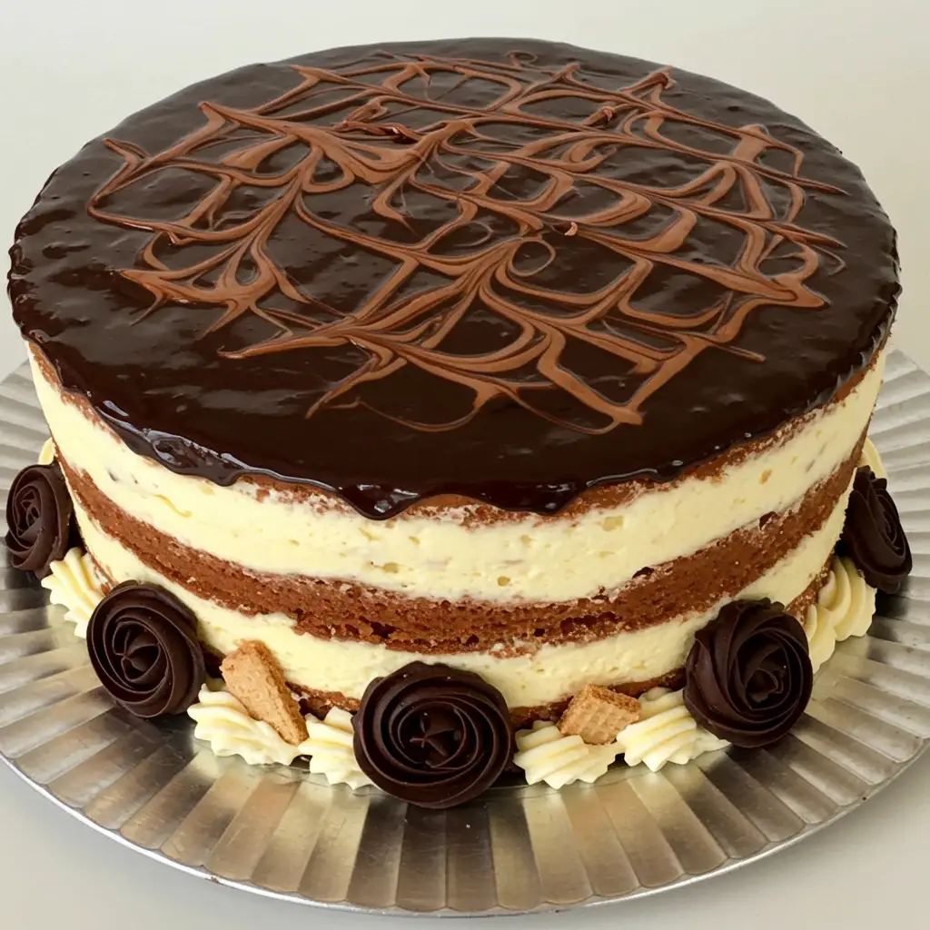 Um bolo úmido e delicioso, com camadas de bolo fofinho intercaladas com cremes de chocolate branco e meio amargo, finalizado com um irresistível ganache e pedaços de Bis. Uma verdadeira explosão de sabores!