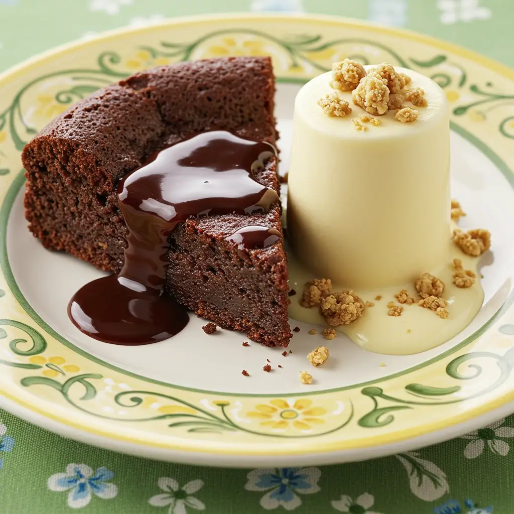 Um bolo fofinho de chocolate, acompanhado de um delicioso sorvete caseiro e uma irresistível calda quente. Uma sobremesa perfeita para um dia especial!