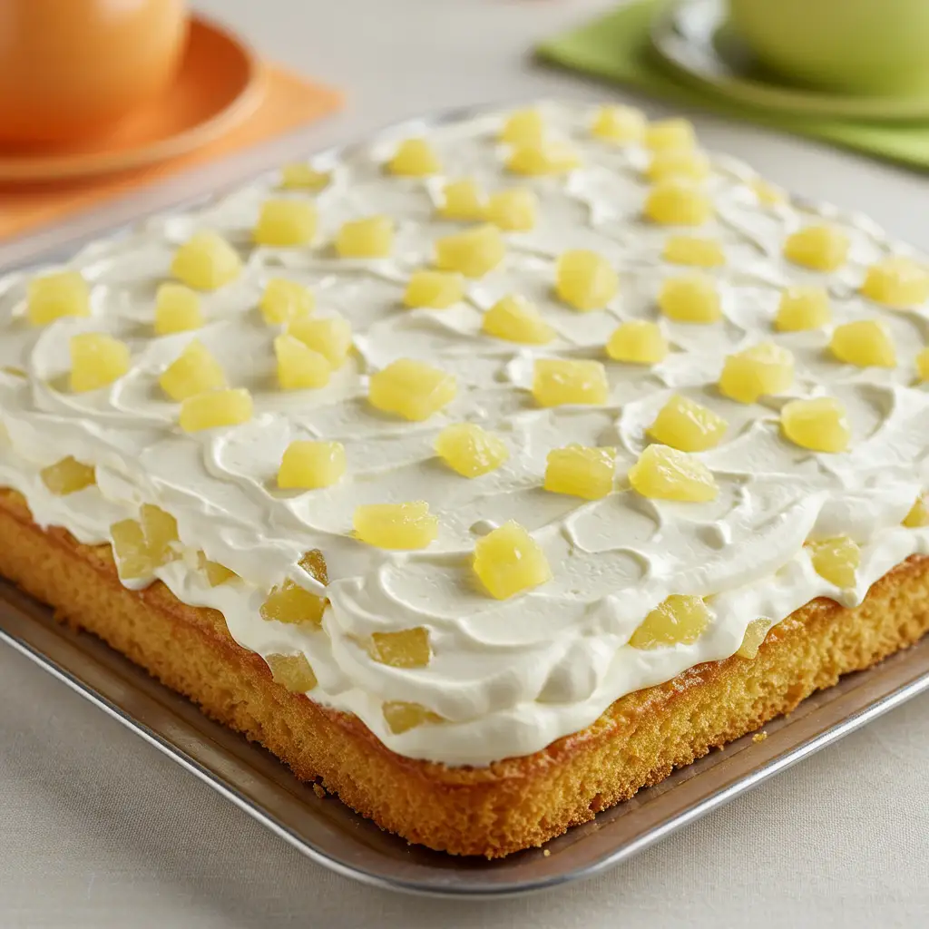 Um bolo úmido e delicioso de abacaxi, coberto com um cremoso recheio e uma irresistível calda. Perfeito para um lanche da tarde ou sobremesa especial.