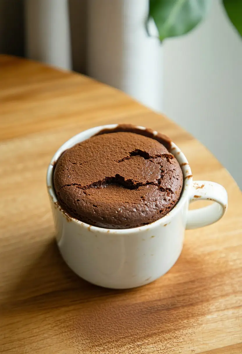 Bolo de caneca de chocolate: sabor marcante em minutos. Uma experiência incrível de textura úmida e chocolate intenso, perfeita para a sua pausa gourmet.