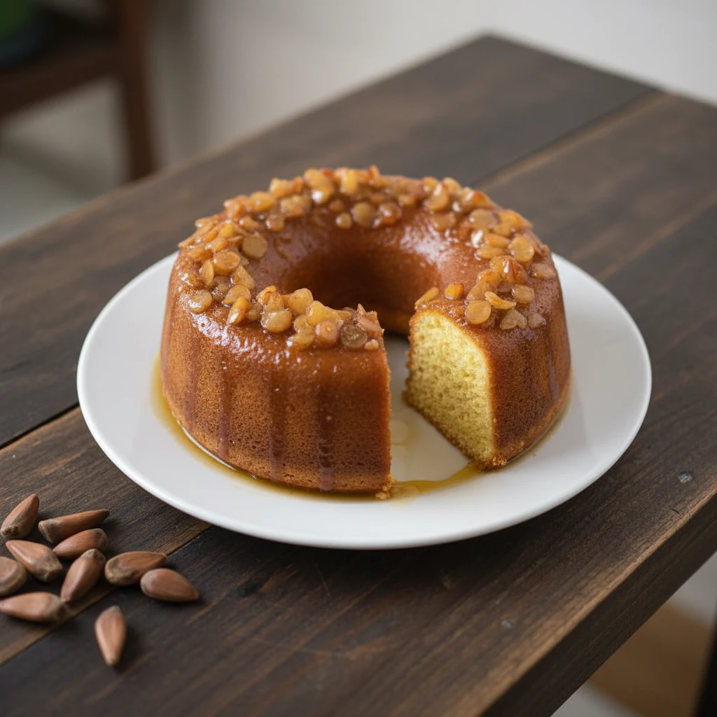 Um bolo úmido e saboroso, com a textura deliciosa da castanha-do-pará e o toque especial da calda cremosa de pinhão. Uma combinação perfeita de sabores brasileiros para momentos inesquecíveis.