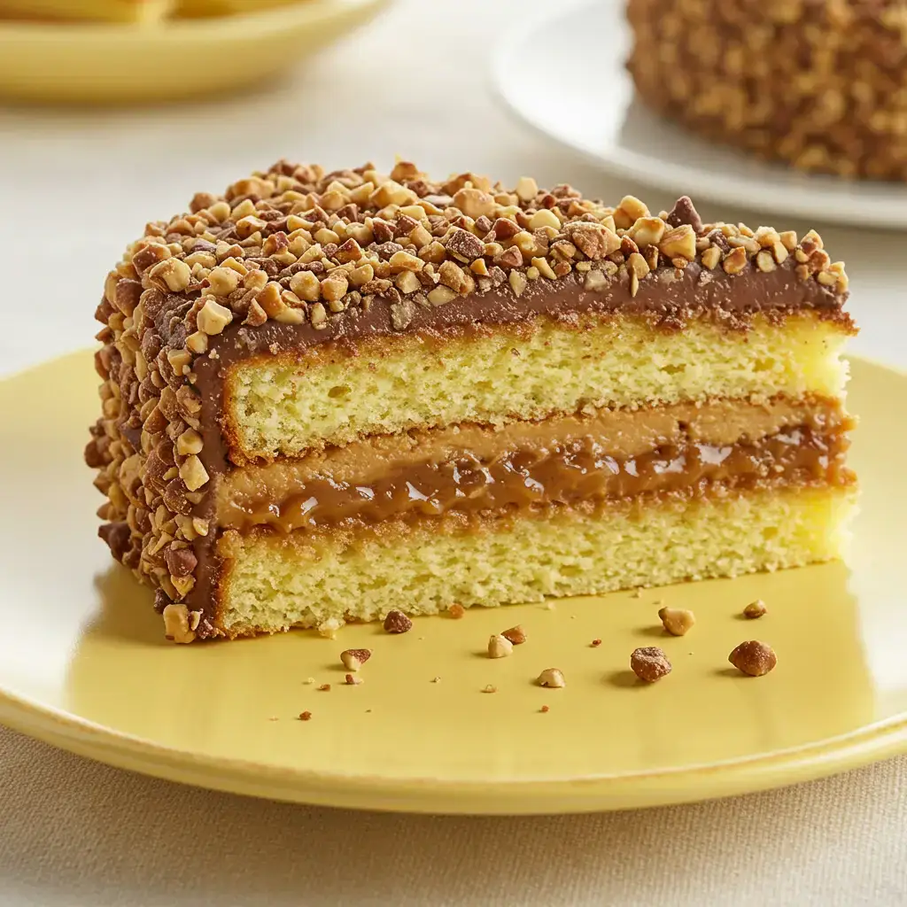 Um bolo macio e úmido de chocolate, recheado com um delicioso doce de leite cremoso, amendoim crocante e coberto com uma ganache irresistível. Uma explosão de sabores que vai te conquistar!