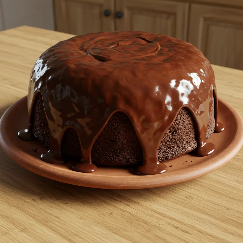 Um bolo de chocolate úmido e delicioso, coberto com uma irresistível calda de chocolate. Perfeito para um lanche da tarde ou uma sobremesa especial.