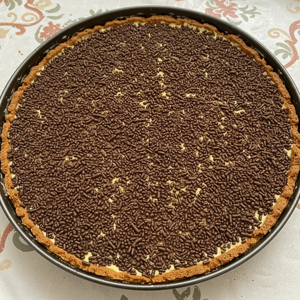 Delicioso bolo de chocolate, irresistível e fofinho, coberto com uma camada cremosa e granulado crocante. Perfeito para festas e comemorações!