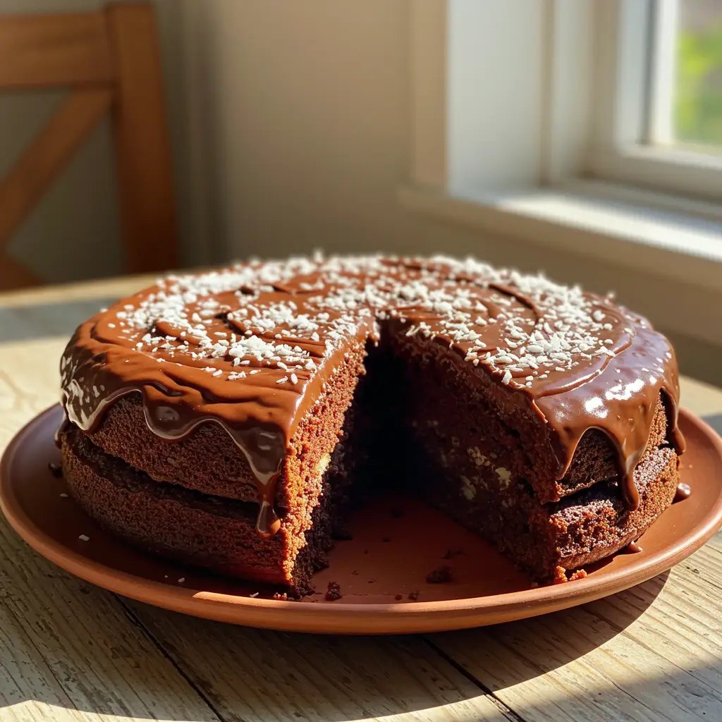 Um bolo de chocolate úmido e saboroso, com coco ralado na massa e uma irresistível cobertura cremosa de chocolate ao leite. Perfeito para um chá da tarde ou uma sobremesa especial.