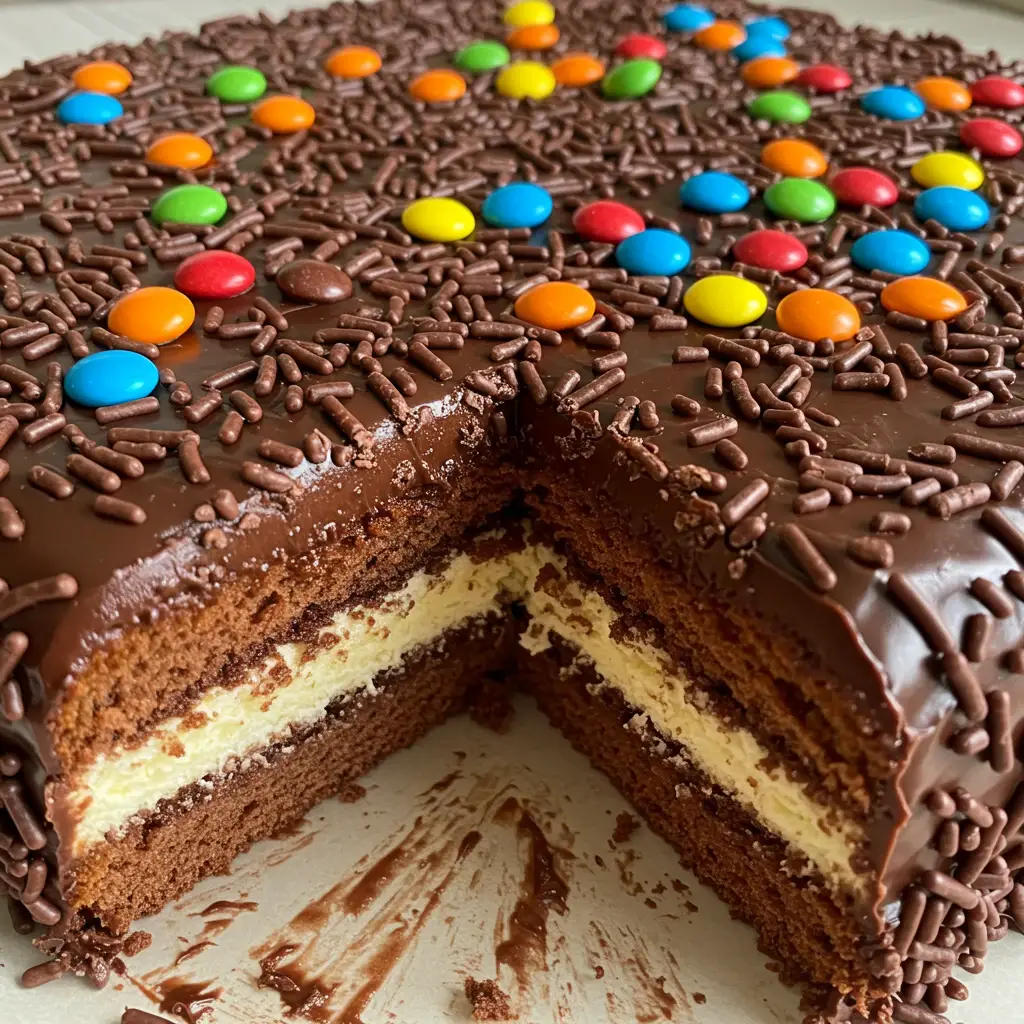 Um bolo de chocolate úmido e irresistível, com um recheio cremoso de beijinho e pedaços suculentos de pêssego em calda. Uma combinação perfeita de sabores que agrada a todos os paladares.