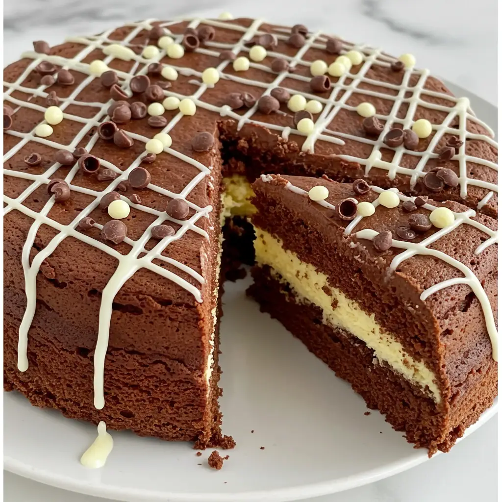 Delicie-se com este bolo de chocolate que combina a intensidade do chocolate preto com a suavidade do chocolate branco. Uma sobremesa perfeita para qualquer ocasião, que vai encantar a todos!