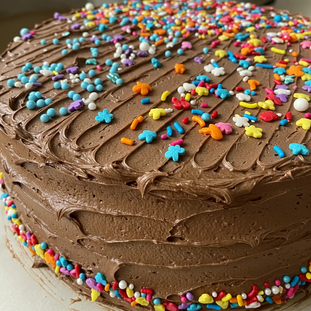 Cubra o bolo com o restante do brigadeiro cremoso e espalhe o chocolate granulado por cima.