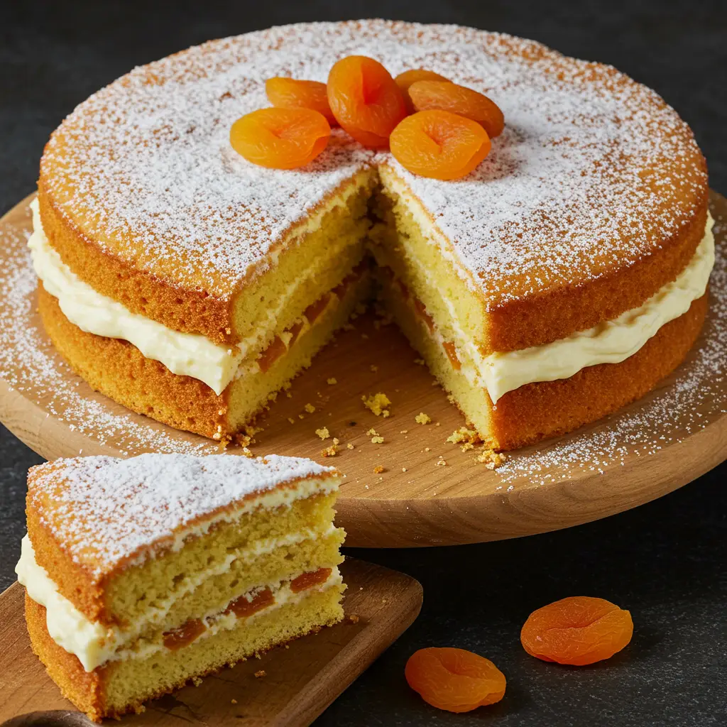 Um bolo macio e úmido, com o sabor intenso dos damascos. O recheio cremoso de leite condensado e damasco completa essa sobremesa deliciosa, perfeita para um chá da tarde especial.