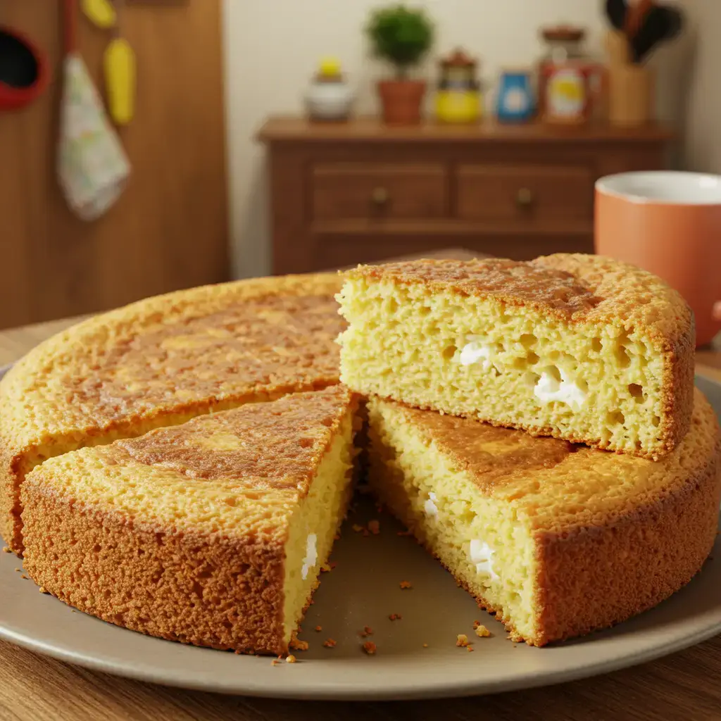 Delicie-se com este bolo de fubá com queijo, uma combinação perfeita de sabor e textura que traz o aconchego da culinária brasileira para a sua mesa.