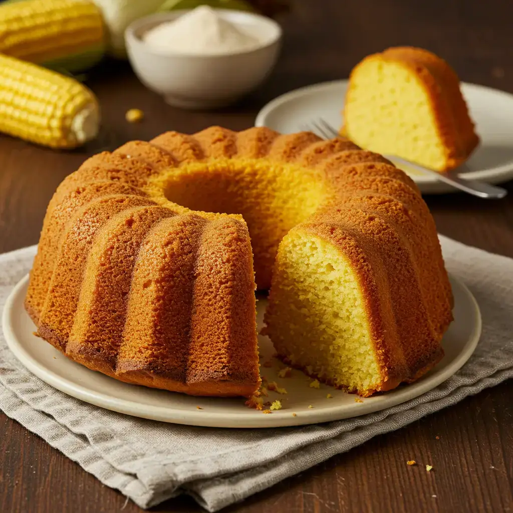 Um bolo de fubá úmido e saboroso, feito no liquidificador para facilitar o preparo. Perfeito para o café da manhã ou da tarde, com um toque especial de açúcar de confeiteiro.