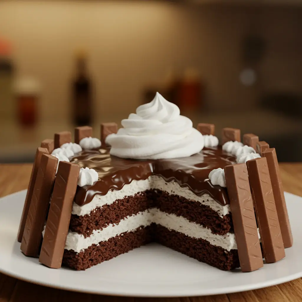 Delicie-se com o nosso Bolo de Kit Kat à minha moda, uma combinação irresistível de chocolate e crocância que vai fazer sua festa bombar! Perfeito para os amantes de doces.