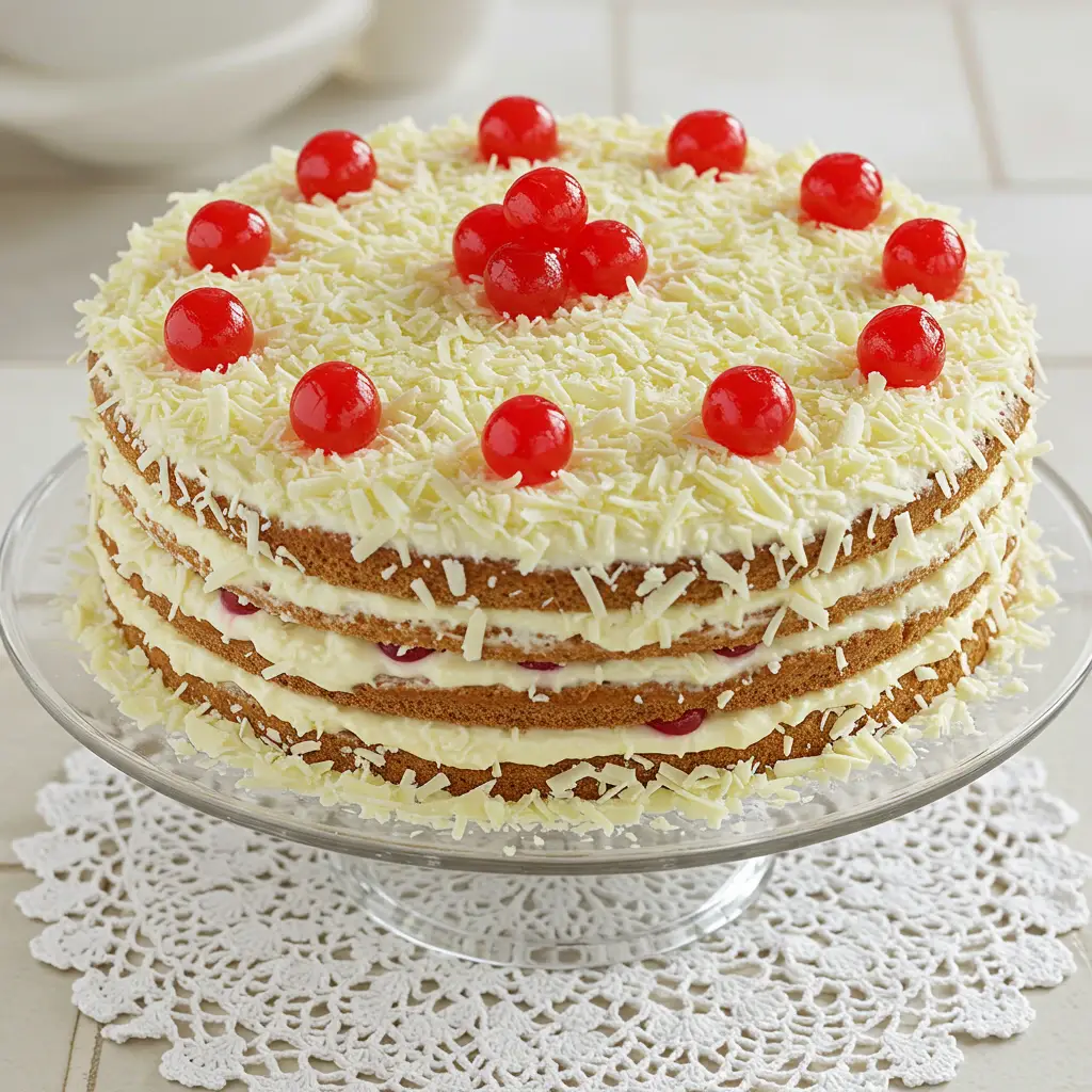 Um bolo macio e cremoso de Leite Ninho, coberto com uma deliciosa calda de morango e decorado com chocolate branco. Uma explosão de sabor que derrete na boca!
