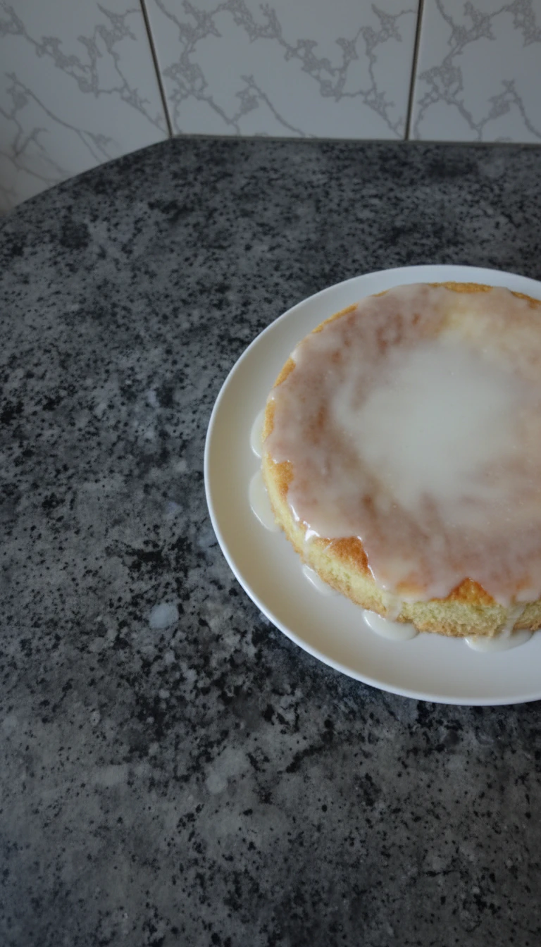 Assim que o bolo estiver pronto, retire do forno e ainda quente, despeje a cobertura de açúcar e limão por cima.