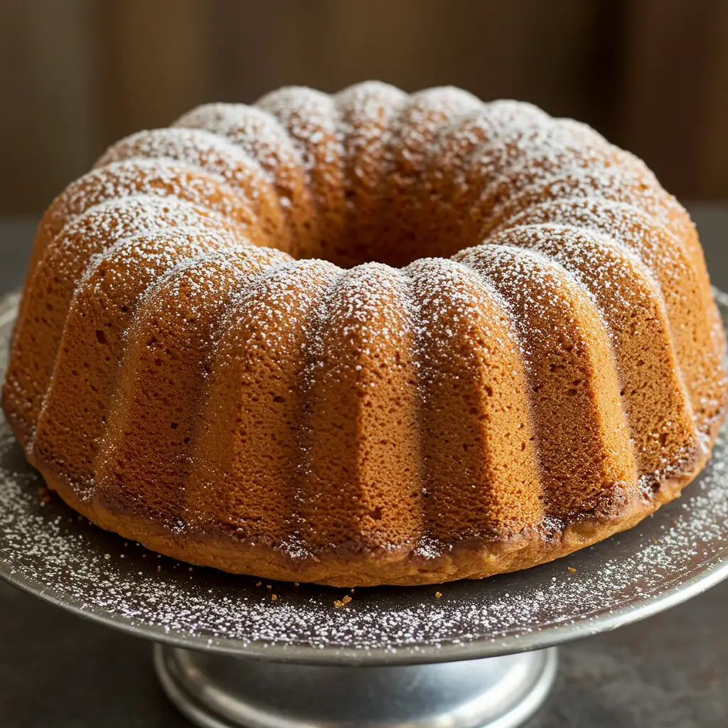 Polvilhe açúcar mascavo misturado com canela por cima do bolo ainda morno.