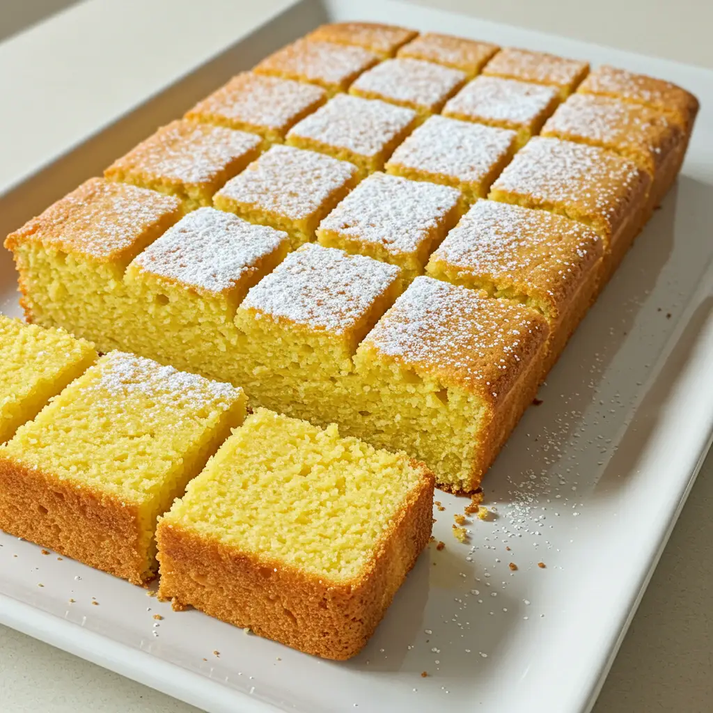 Um bolo de milho úmido e saboroso, com textura macia e um toque de manteiga que derrete na boca. Perfeito para um lanche da tarde ou acompanhamento de um café quentinho.