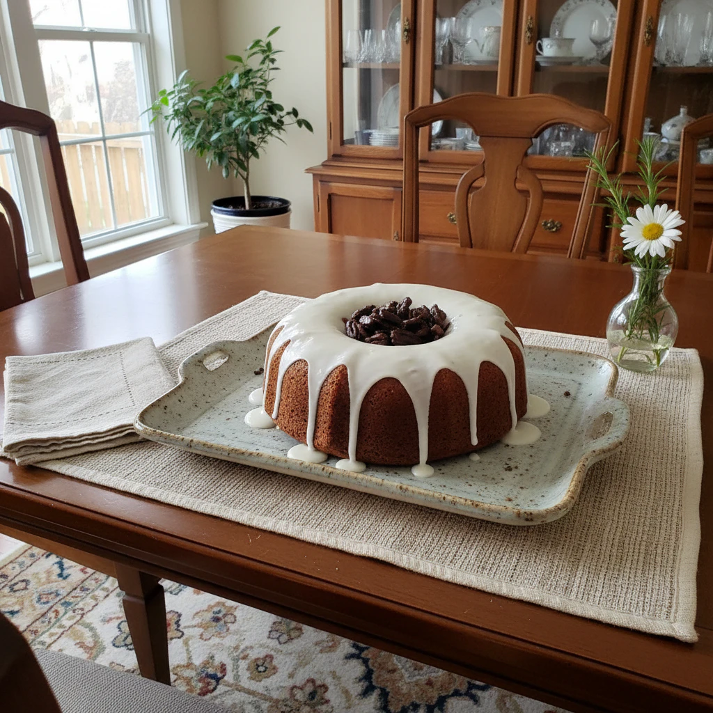 Um bolo úmido e saboroso, com o delicioso contraste da textura crocante das nozes-pecã e um irresistível toque de canela. Perfeito para um chá da tarde especial ou comemoração em família.