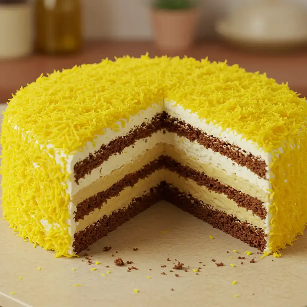 Um bolo de camadas macias e saborosas, com suspiro crocante, recheio cremoso de chocolate e finalizado com geléia de damasco e fios de ovos. Uma verdadeira festa de sabores e texturas!