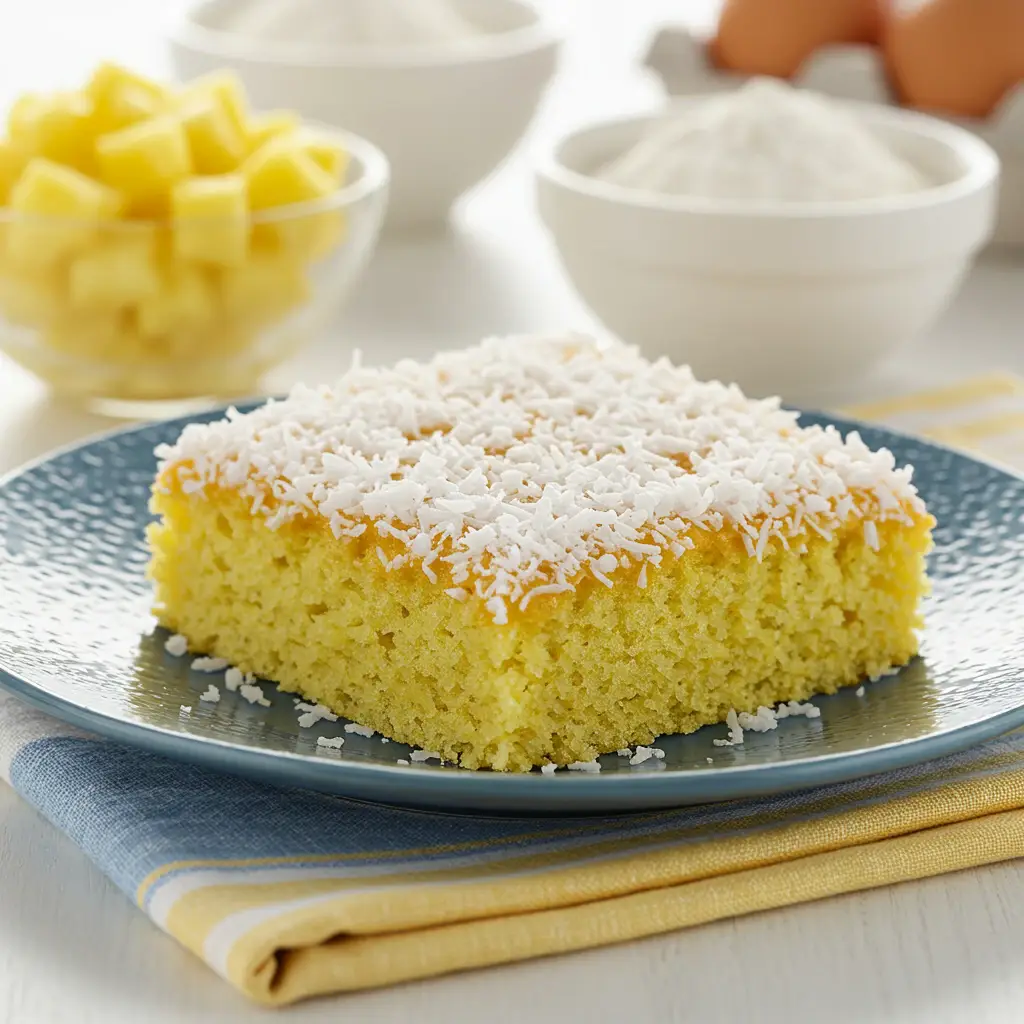 Um bolo úmido e perfumado de abacaxi, coberto com um irresistível creme de leite condensado e coco. Perfeito para um lanche da tarde ou sobremesa especial. Fresquinho e delicioso!