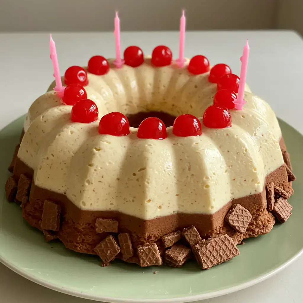 Desenforme o bolo e decore com o bis picado antes de servir.