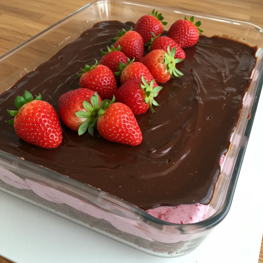 Um bolo de chocolate úmido e macio, com um mousse cremoso de morangos e cobertura de chocolate meio amargo. Uma explosão de sabores que encanta a todos! Perfeito para um aniversário ou um encontro especial.