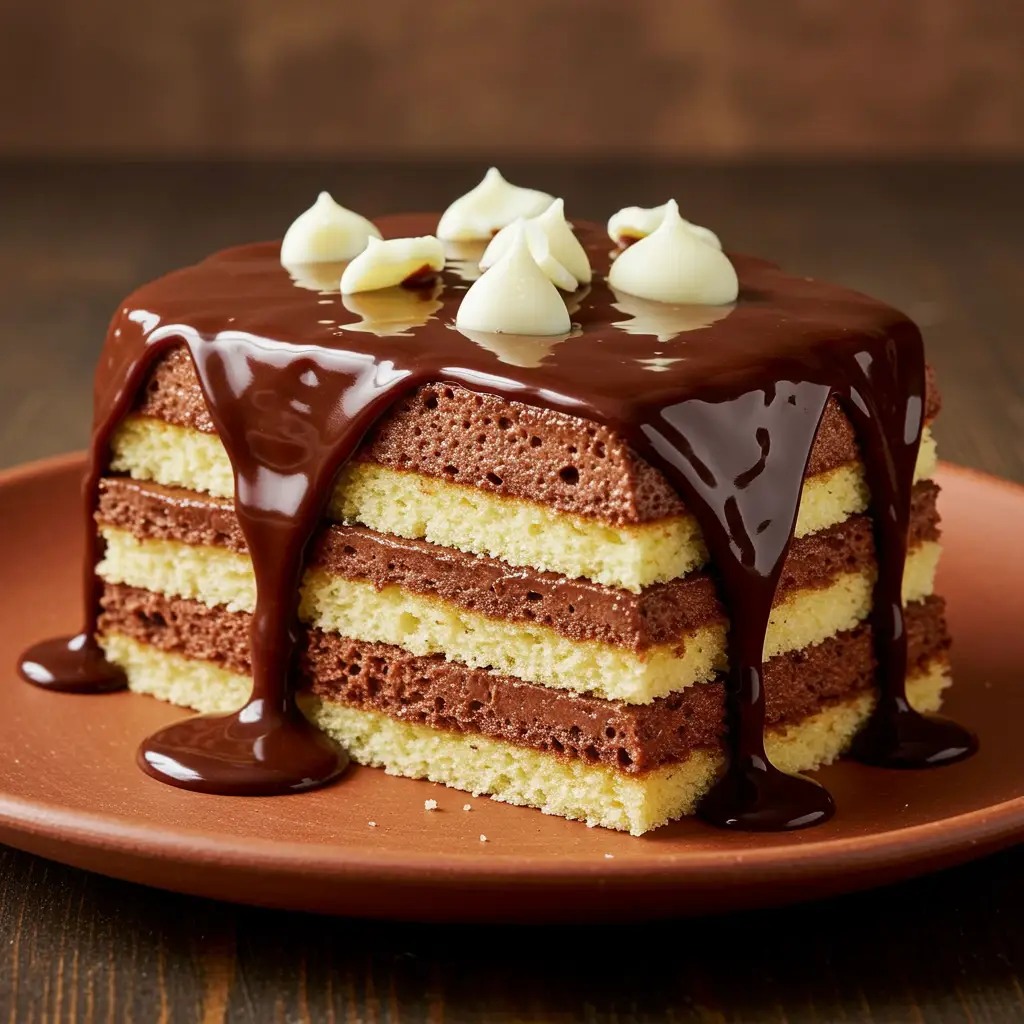 Um bolo leve e sofisticado, com camadas de pão-de-ló intercaladas com mousse de chocolate e coco. A combinação perfeita de texturas e sabores para encantar seus convidados!