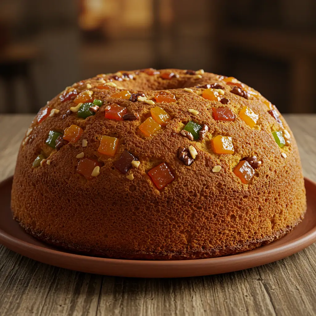 Um bolo úmido e saboroso, repleto de frutas cristalizadas e castanhas-do-Pará. Perfeito para um chá da tarde especial ou comemoração em família. A combinação de texturas e sabores é irresistível!