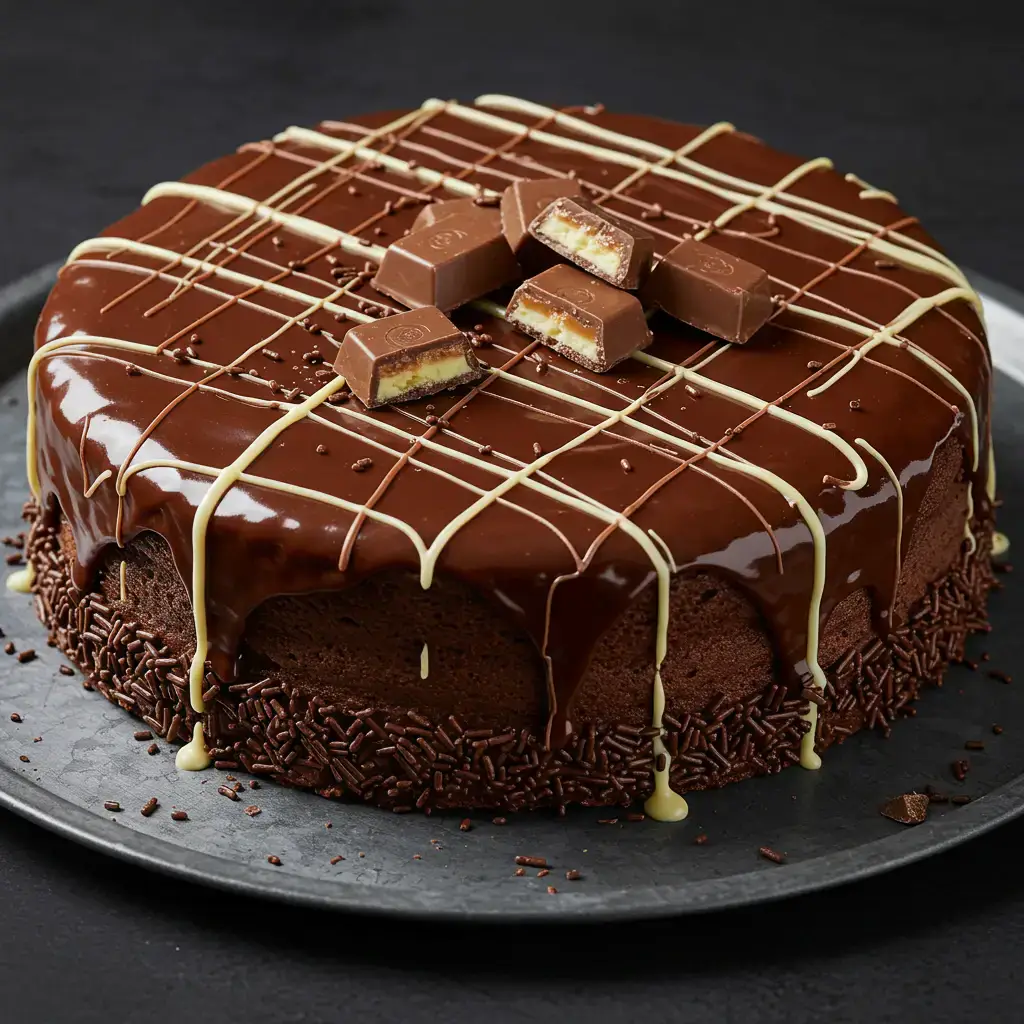 Um bolo de chocolate úmido e delicioso, recheado com duas camadas de trufas: uma de chocolate ao leite e outra de chocolate branco. Coberto com uma generosa camada de ganache de chocolate ao leite, uma verdadeira explosão de sabor!