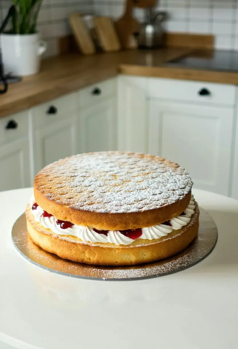 Coloque o segundo bolo por cima e polvilhe com açúcar de confeiteiro antes de servir.