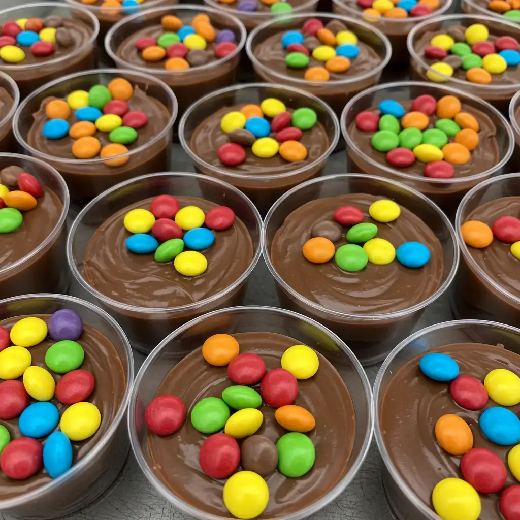 Transfira para potinhos ou taças e decore com granulado de chocolate.