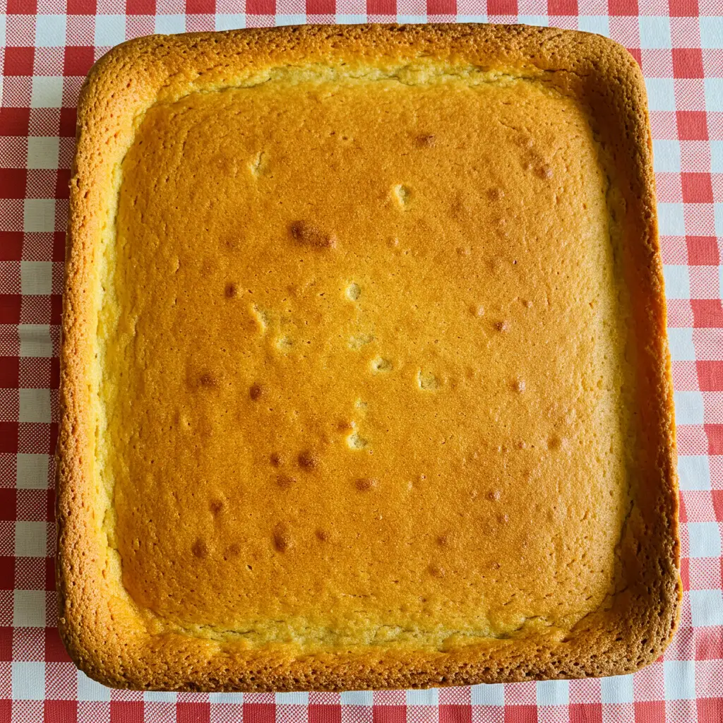 Despeje a massa na forma untada e leve ao forno por aproximadamente 25 minutos ou até que esteja dourada.