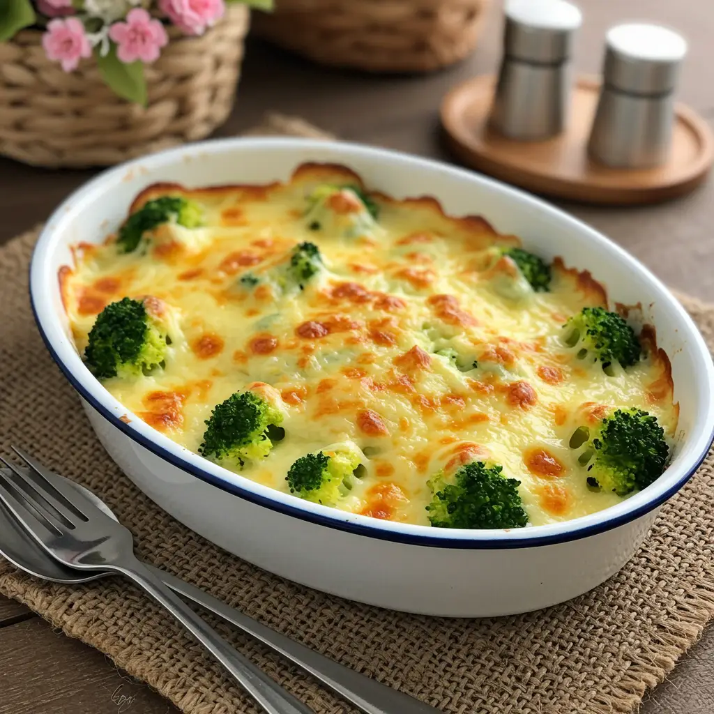 Leve ao forno preaquecido a 220°C por 20 minutos, ou até o queijo dourar e o brócolis borbulhar.