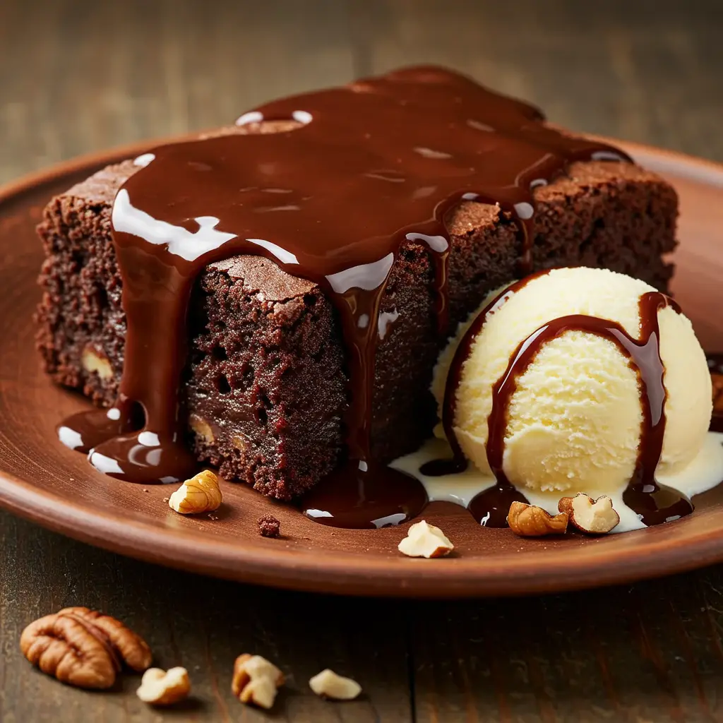 Um brownie fudgy e intenso, com o sabor inconfundível do chocolate meio amargo e o toque crocante das nozes. Perfeito para um lanche da tarde ou sobremesa especial, acompanhado de sorvete de creme.