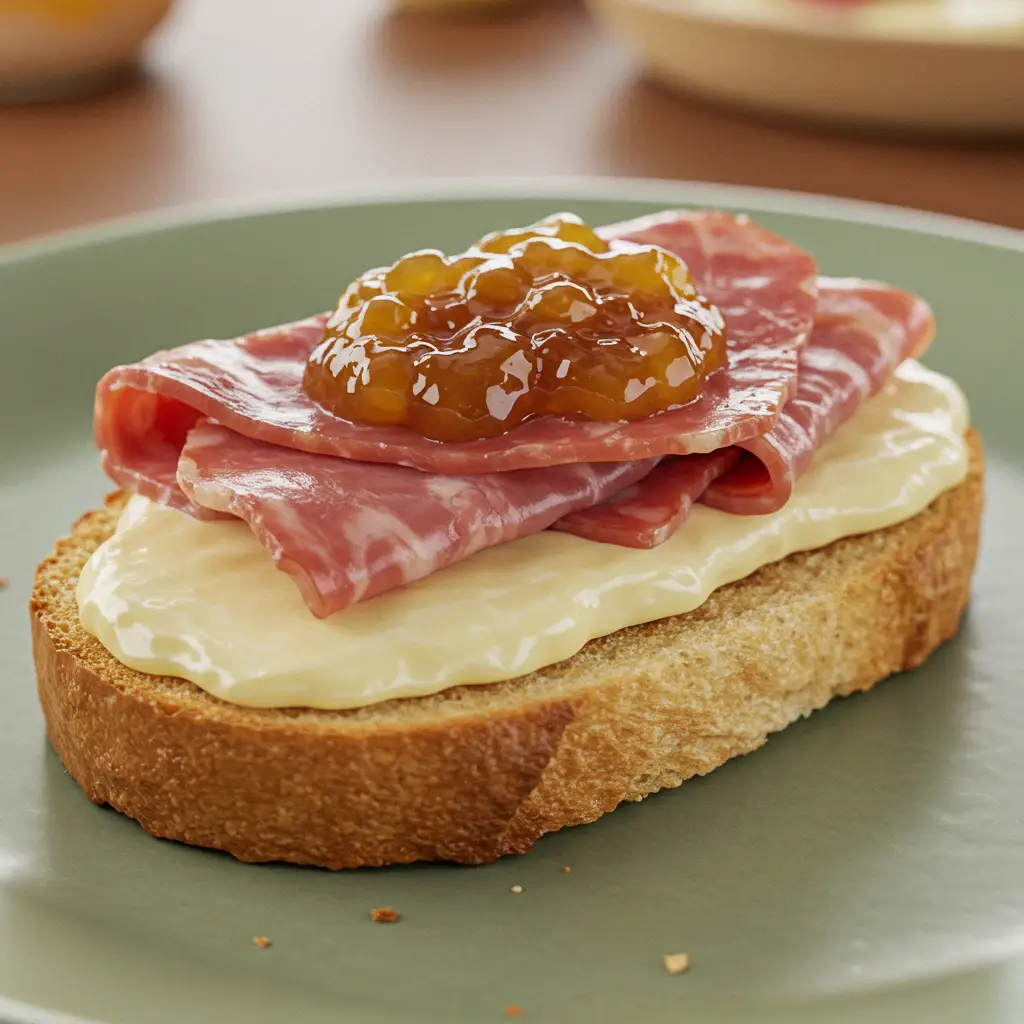 Uma deliciosa combinação de sabores: o cremoso brie, o sabor defumado do presunto parma, o toque adocicado da geleia de damasco e o pão italiano crocante. Uma entrada perfeita para impressionar!