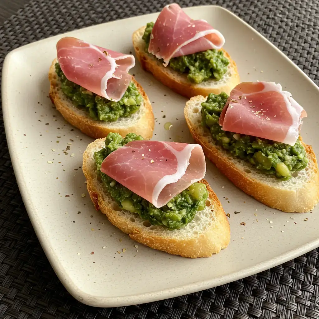 Uma explosão de sabores mediterrâneos! Bruschetta crocante com abobrinha, berinjela grelhadas, queijo Gouda derretido e o toque especial do presunto Parma.