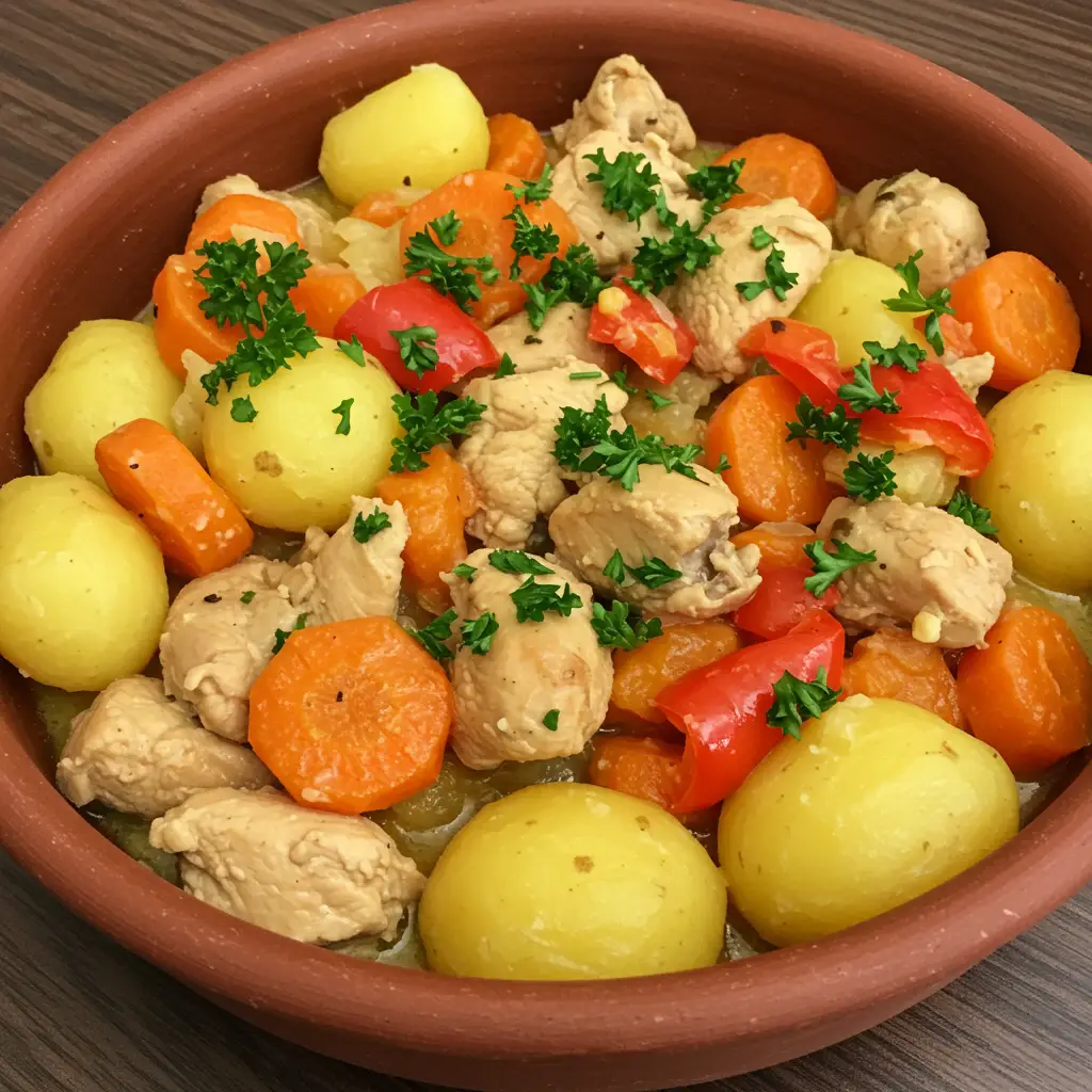 Uma receita reconfortante e saborosa, perfeita para um jantar em família. Frango suculento em um molho cremoso com legumes, ideal para os dias frios.