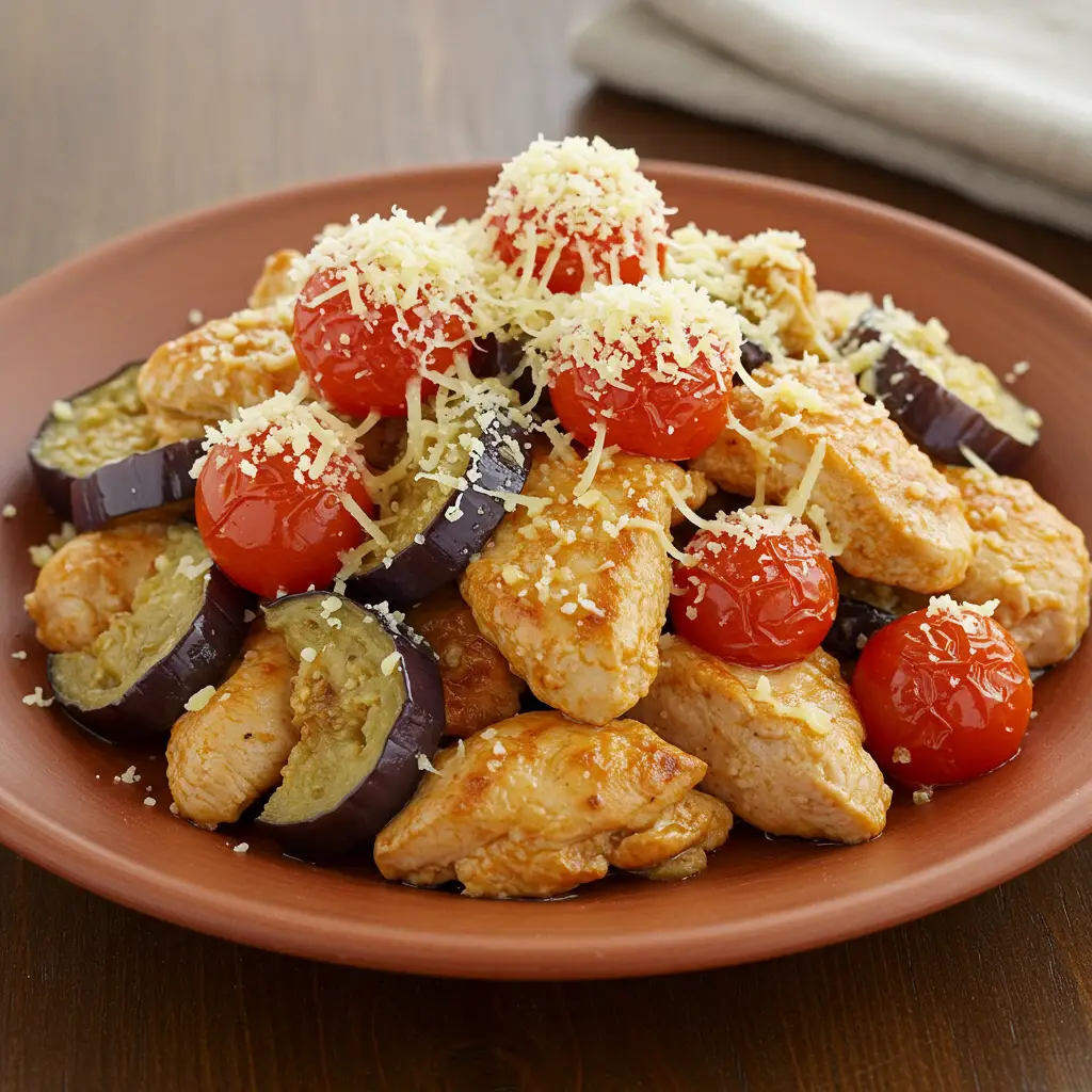 Uma caçarola saborosa e fácil de fazer, perfeita para um jantar em família. O frango suculento, combinado com a berinjela macia e os tomates cereja, resulta em um prato delicioso e reconfortante.
