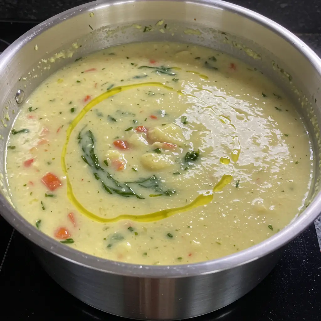 Um caldo verde cremoso e saboroso, com o toque defumado do bacon e o sabor picante da calabresa. Uma receita reconfortante e perfeita para um dia frio.