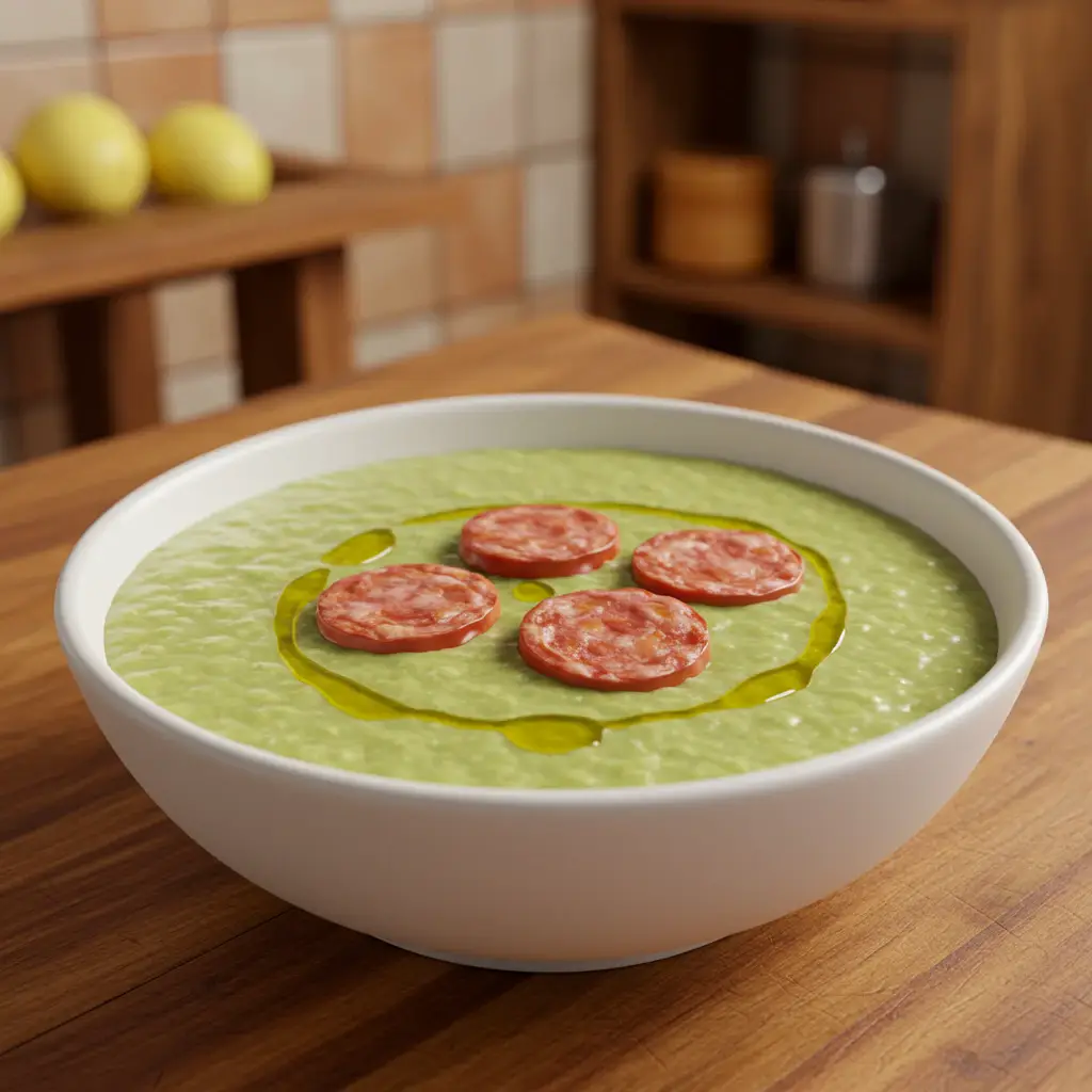 Um abraço quente em forma de sopa, o Caldo Verde Tradicional com Linguiça é perfeito para aquecer o coração nas noites frias.