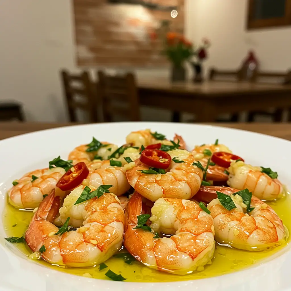 Um prato irresistível que combina a suculência do camarão com o sabor intenso do alho e um toque de pimenta. Perfeito para um jantar especial ou para impressionar os amigos!