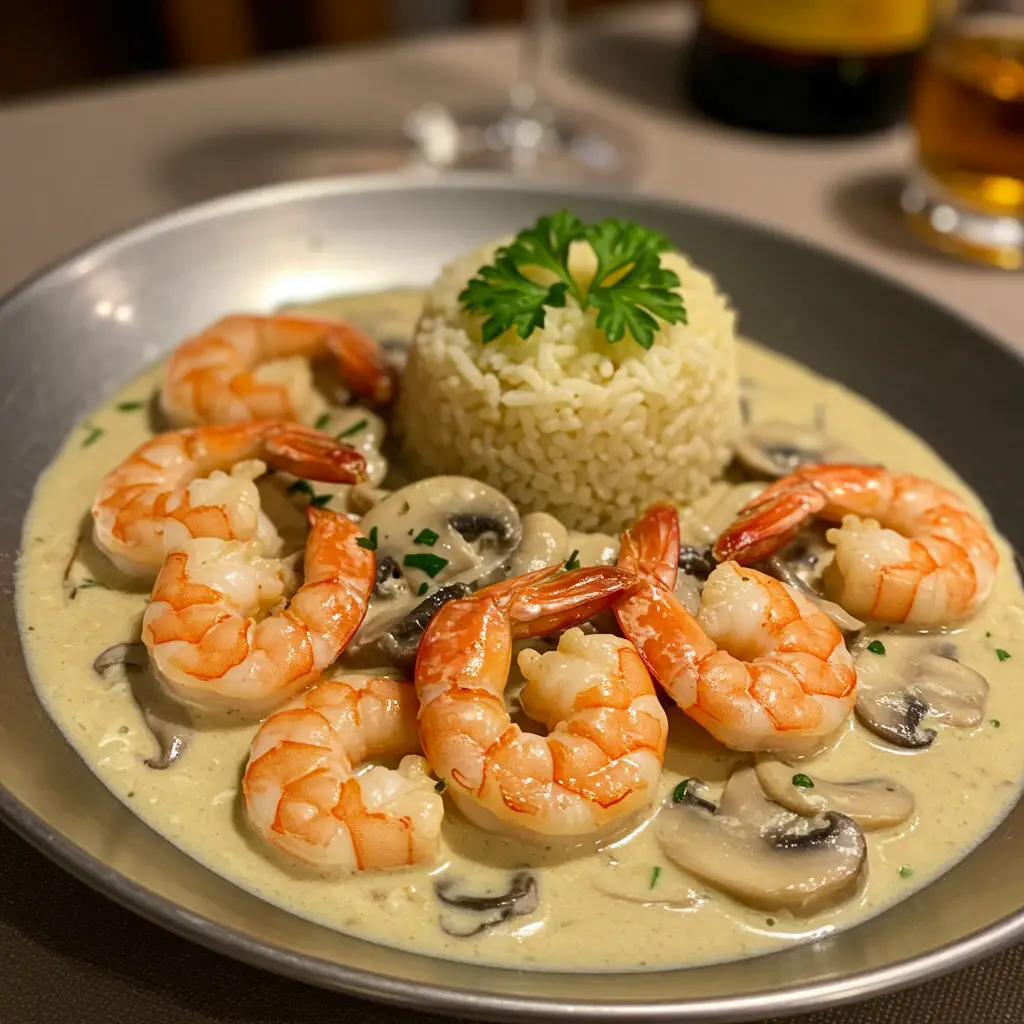 Um prato sofisticado e saboroso! Camarões suculentos flambados ao uísque, realçados por cogumelos salteados e um delicioso molho cremoso. Uma experiência inesquecível para o paladar.
