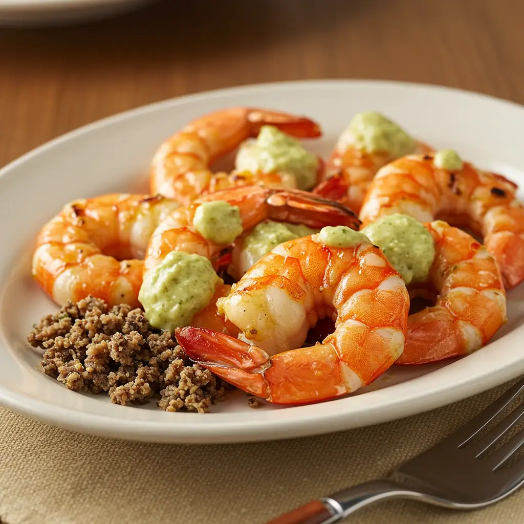 Deliciosos camarões grelhados, realçados por um pesto cremoso e aromático de castanha de caju. Uma explosão de sabores que irá te surpreender! Prato leve e sofisticado, ideal para um jantar especial.