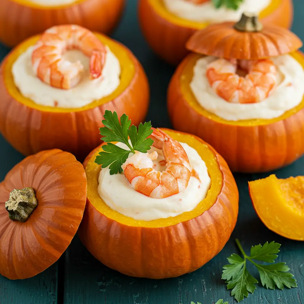 Deliciosas mini-abóboras assadas, recheadas com camarões salteados em um molho cremoso de tomate e cream cheese. Uma entrada sofisticada e saborosa, perfeita para uma ocasião especial.