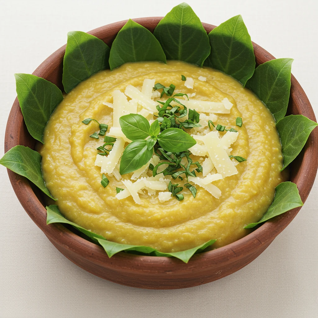 Sirva a canjiquinha em uma panela de barro, ferro ou pedra. Decore com espinafre, queijo ralado, cheiro-verde e pimentas biquinho.
