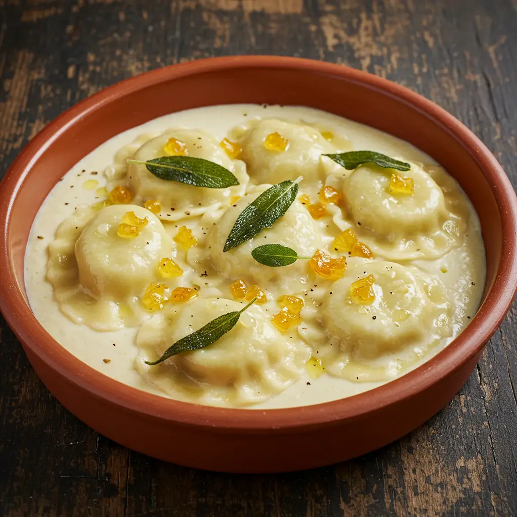 Um prato sofisticado e saboroso! Deliciosos capellini caseiros, com um irresistível molho cremoso de cogumelos, peito de peru e Gruyère, finalizado com crocantes avelãs.